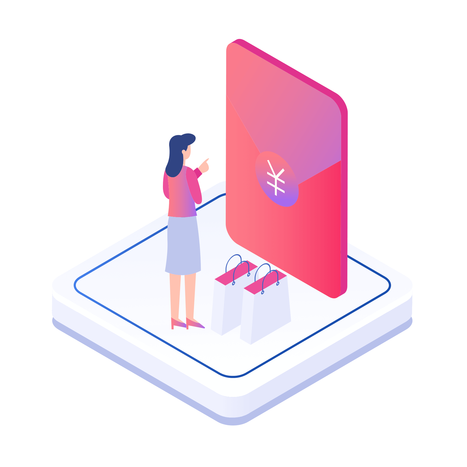 消费者界面,用于红包活动、忠诚度、扫码和线下渠道促销。
